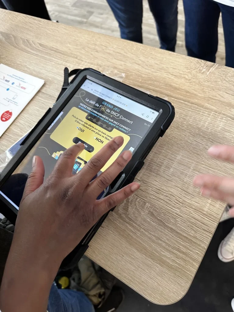Depuis 2023, RMA accompagne SNCF Connect pour rencontrer les voyageurs sur le terrain afin de promouvoir l’application et de récolter des avis des usagers de l’application.